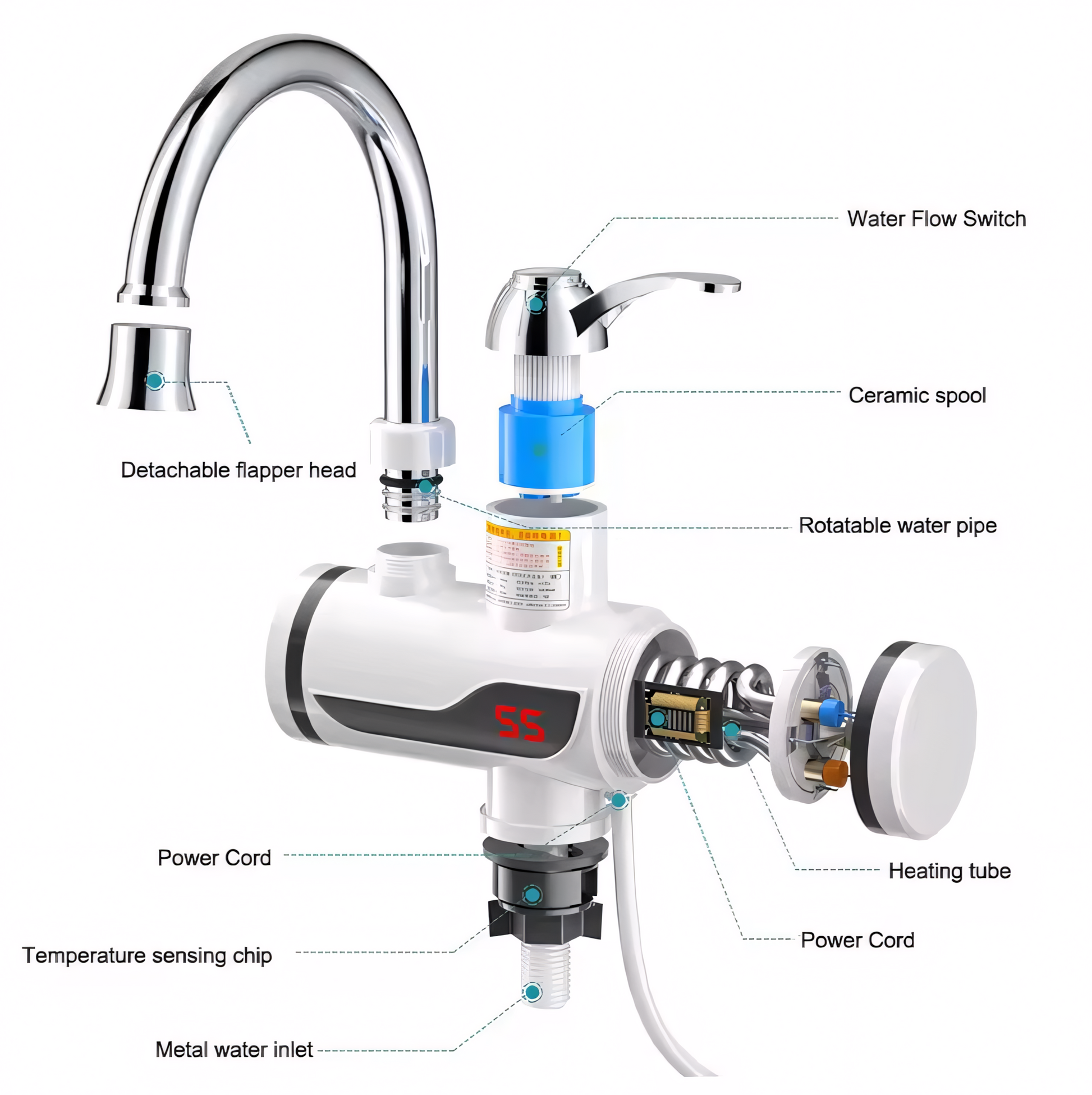Shock-Proof Design: Water flow and the heating element are fully separated and insulated. Plus, it is IPX4 waterproof against splashes.